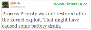 Process Priority was not restored after the kernel exploit. That might have caused some battery drain.Download redsn0w 0.9.6rc16 for mac from here